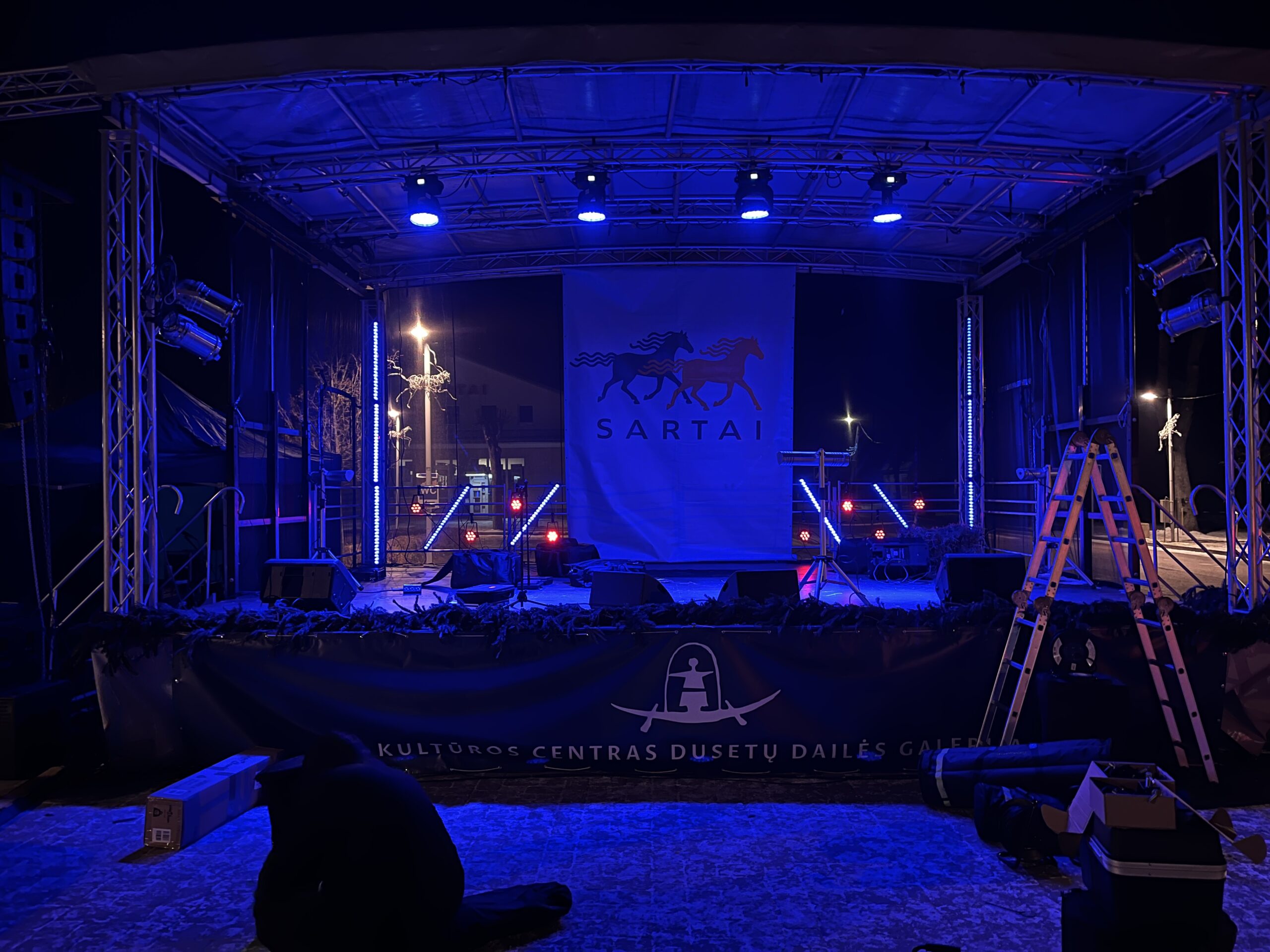 Pastatome scenas, pakylas, stogelius ir kitus reikalingus elementus renginio erdvėje. Užtikriname, kad viskas būtų saugu, patogu ir pritaikyta jūsų renginio poreikiams.